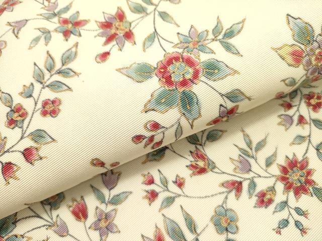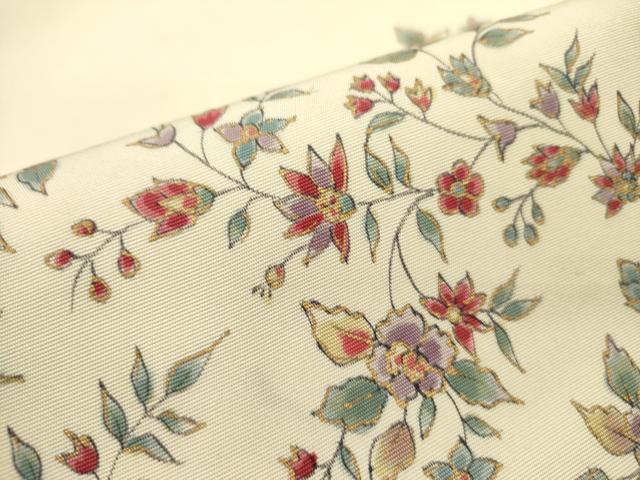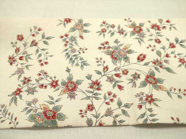 Heiwa-ya Kimono: Shiose 9-inch Nagoya Obi, Hand-painted Sarasa Floral Design, Gold Accents, Pure Silk, Excellent Item, DAAZ2850op