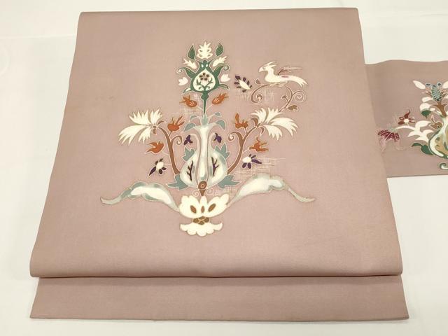 Heiwaya Kimono ● Shioze silk nine-inch Nagoya obi, floral and bird pattern, gold leaf, pure silk, exquisite item, CABE3675dy