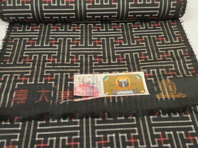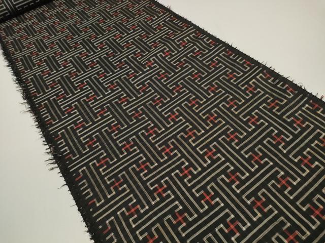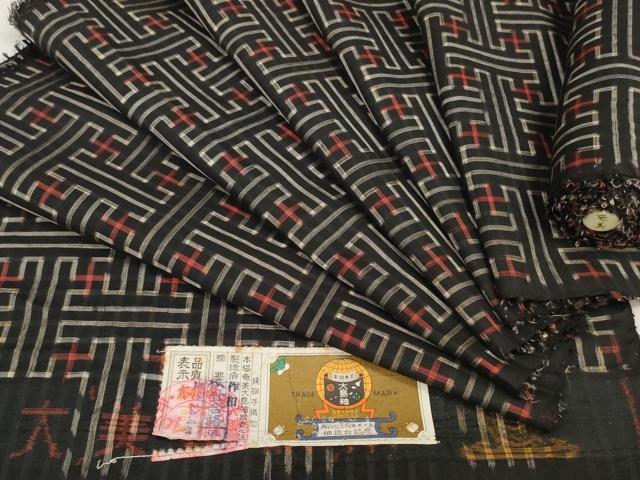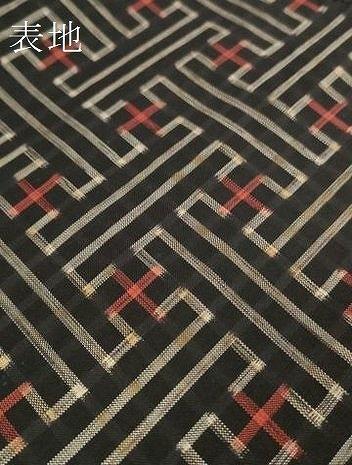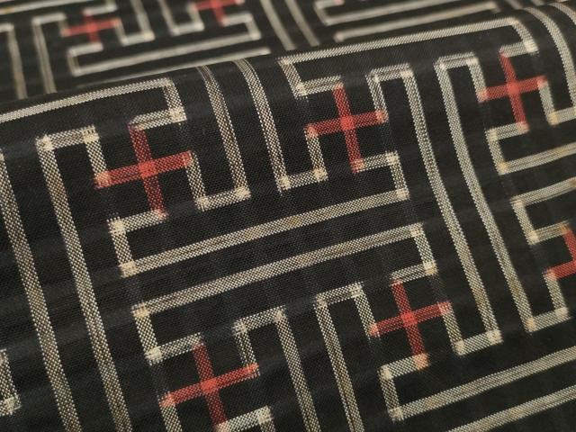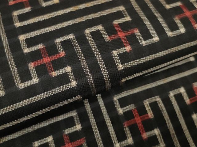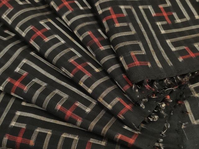 車輪梅と泥で染めた黒い地糸と絣糸を使用し、