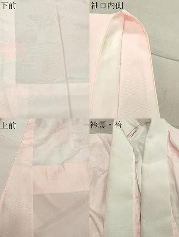 状態は接写画像のように下前・袖口内側・上前に薄い汚れ、