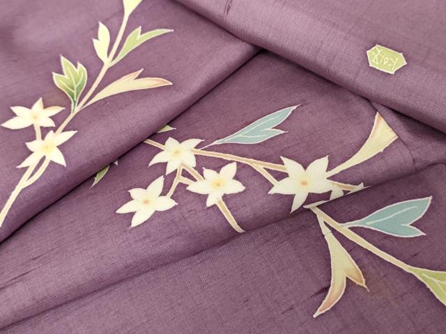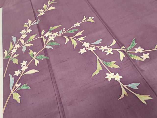 Heiwa-ya Kimono: Authentic Kaga Yuzen kimono by Tomeo Naritake. Visiting kimono with branch and flower pattern on Hakusan Tsumugi silk. Pure silk. Excellent quality. AABE5296cs