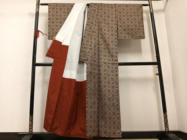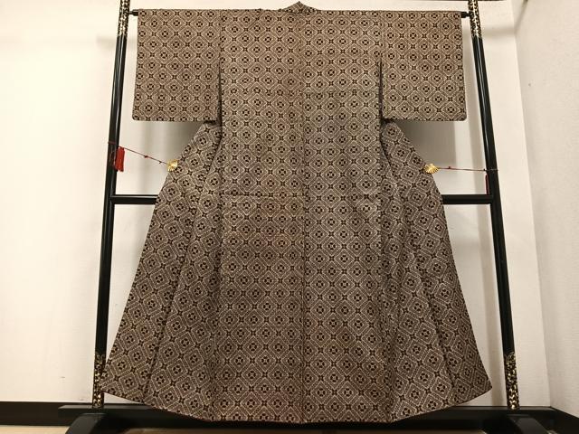 Heiwa-ya Kimono: Authentic Oshima Tsumugi, Antique Oshima, Shuke Flower Pattern, Pure Silk, Excellent Quality, AABE3966ph