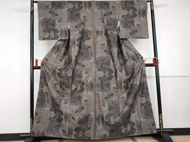 Heiwaya Kimono ● Authentic Oshima Tsumugi Silk, Katas 9-mark, Western Floral Pattern, Pure Silk, Exquisite Item, AABG7989cs