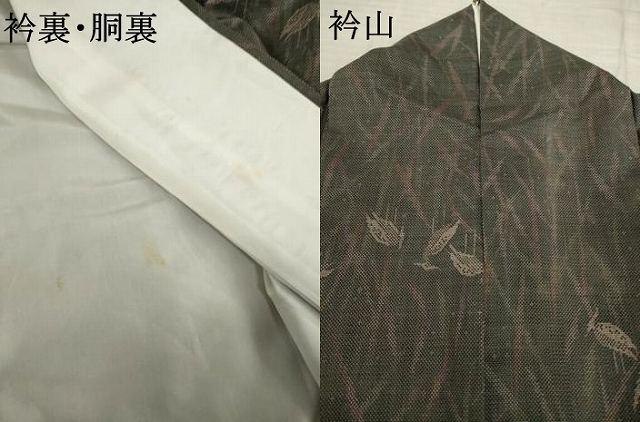 状態は接写画像のように衿裏・胴裏にシミ、衿山に薄い汚れがございますが