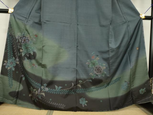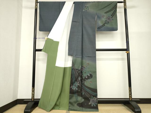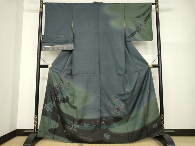 Heiwaya Kimono ● Authentic Oshima Tsumugi Silk Kimono, Dyed Oshima, Visiting Kimono, Artist-Made, Tsujigahana Pattern, Flowing Water and Flower Design, Gradation Dyeing, Pure Silk, Excellent Quality, Unused, AABG2655ck