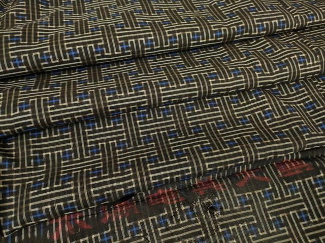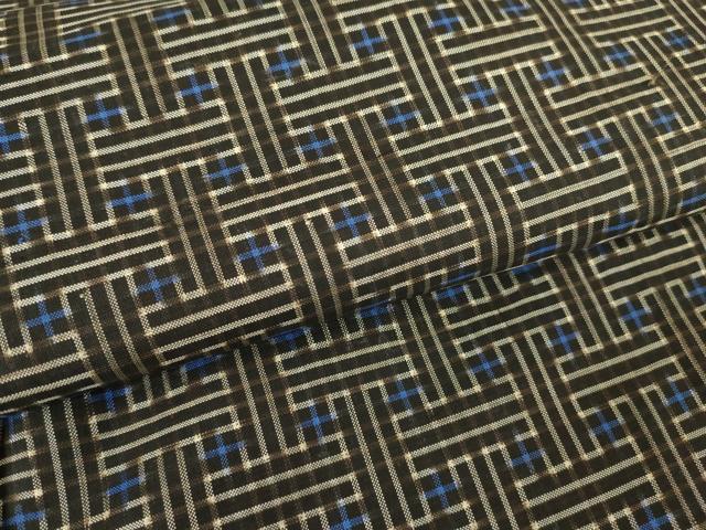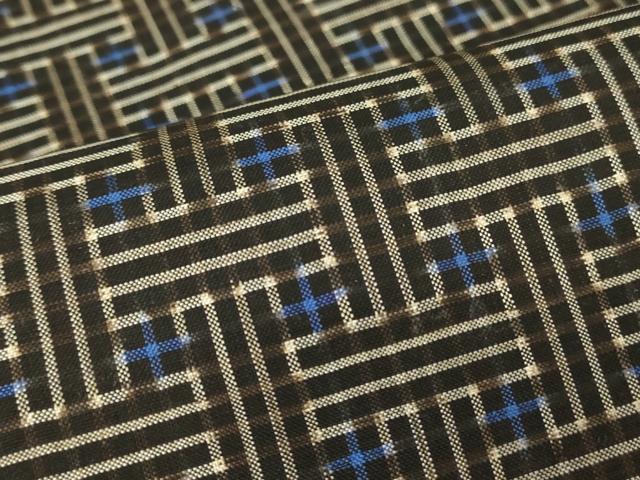 車輪梅と泥で染めた黒い地糸と絣糸を使用し、