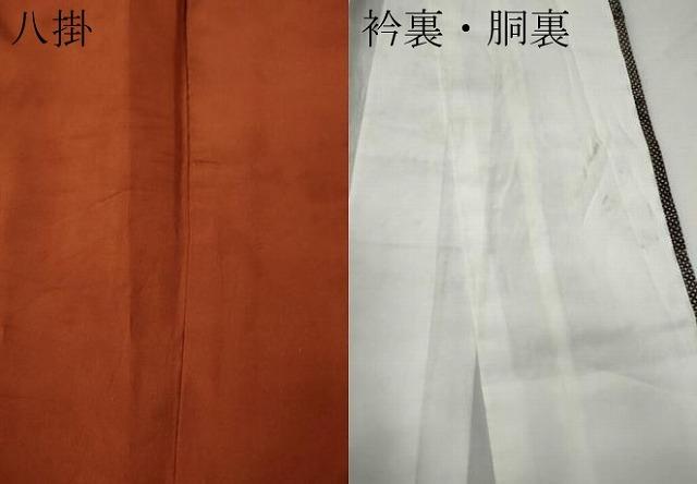 状態は接写画像のように衿裏・胴裏・八掛に薄い汚れがございますが