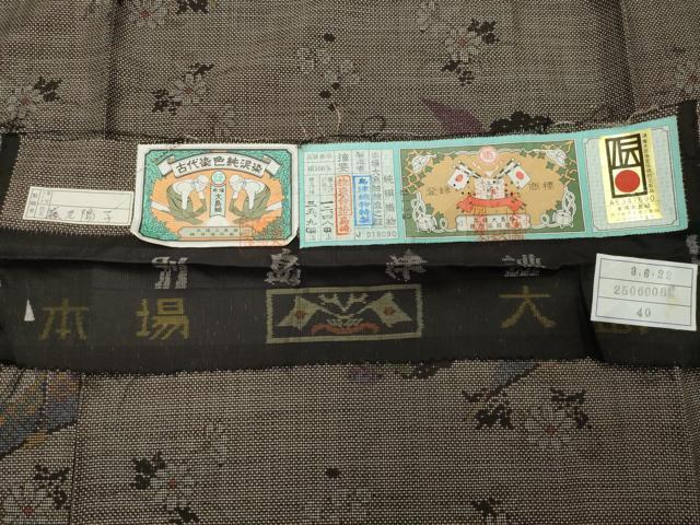Heiwaya Kimono: Authentic Oshima Tsumugi, 9-mark, Mud-dyed, Folding Screen Floral Design, Shimazu Orimono Special, Certificate of Authenticity, Original Price: ¥480,000, Pure Silk, Excellent Condition, Unused, CABA9688gh