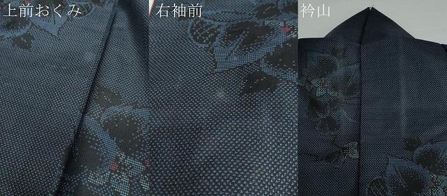 状態は接写画像のように上前おくみ・左袖前・衿山に薄い汚れがございますが