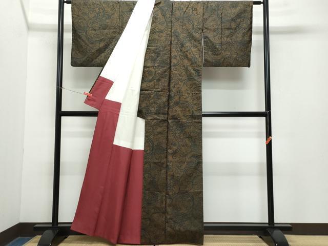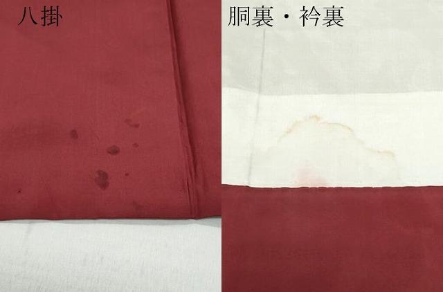 状態は接写画像のように八掛にシミ・変色、胴裏・衿裏に汚れがございますが