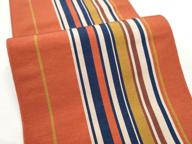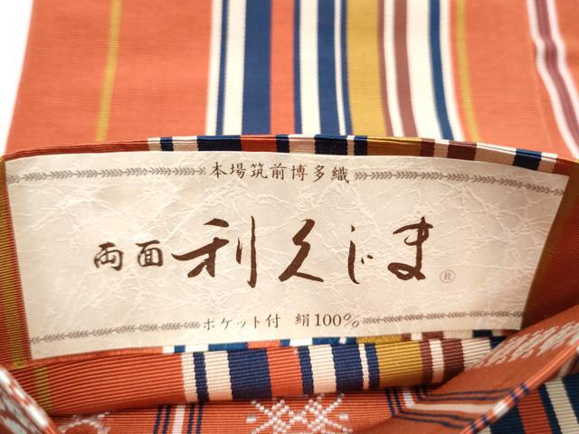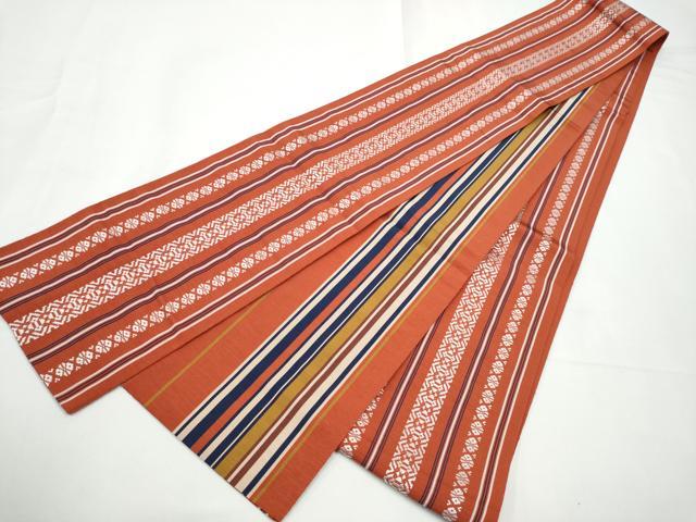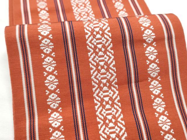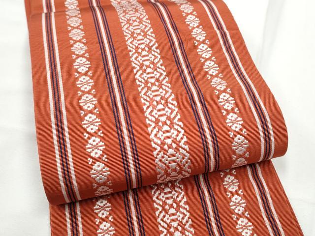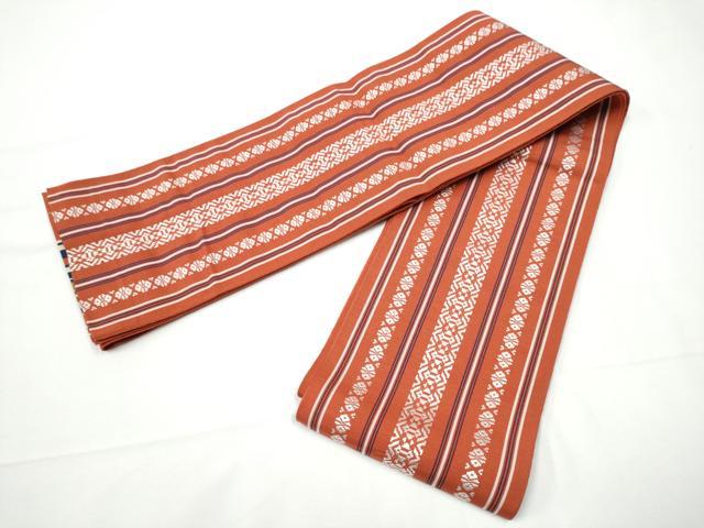 Heiwaya Kimono ● Authentic Chikuzen Hakata Weave Double-Sided Half-Width Obi, Rikyu-jima Pattern, Kenjo Style, with Certificate of Authenticity, Pure Silk, Excellent Item, CABE0378hy