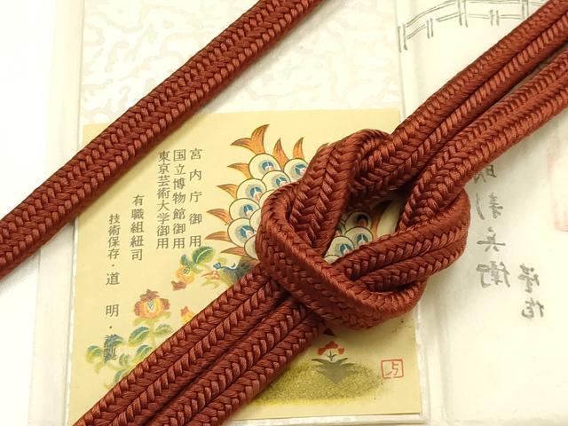 Heiwaya Kimono ● Premium Quality Yushoku Kumihimo Domyo Obi-jime (Kimono Sash Cord) Kanmuri-kumi (Crown Braid) Chestnut Plum Brown - For the Imperial Household Agency, National Museum, and Tokyo University of the Arts - A Masterpiece AABG8953ay