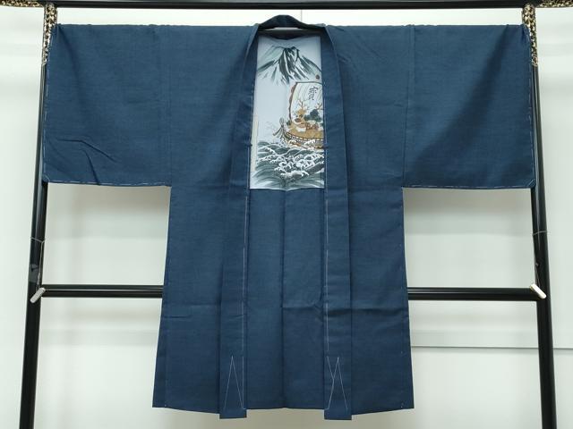 Heiwaya Kimono: Premium Men's Tsumugi Kimono Ensemble and Nagajuban Set, King Size, Dark Navy, Excellent Condition, Unused, CZAA3001s5