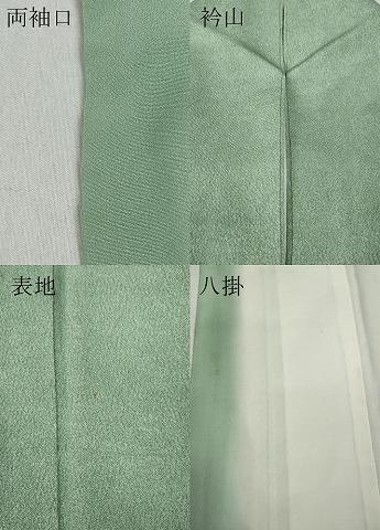 状態は接写画像のように表地所々・衿山・両袖口・胴裏・八掛に薄い汚れがございます。