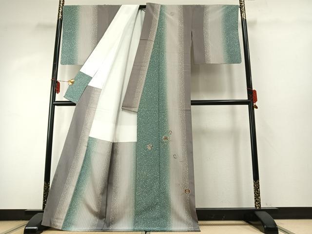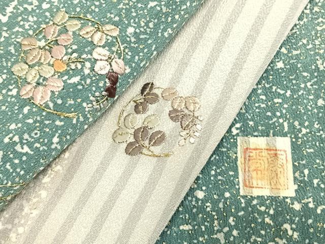 Heiwaya Kimono: Yasutsune, visiting kimono, embroidered with a round flower and bird design, gold thread and gold accents, pure silk, exquisite item, AABE1652fy