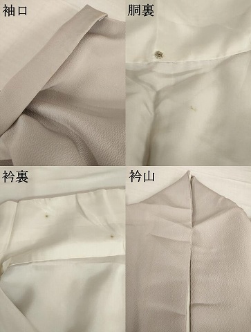 状態は接写画像のように袖口・衿山に薄い汚れ、衿裏・胴裏にホックシミがございますが