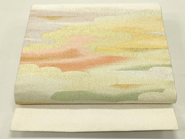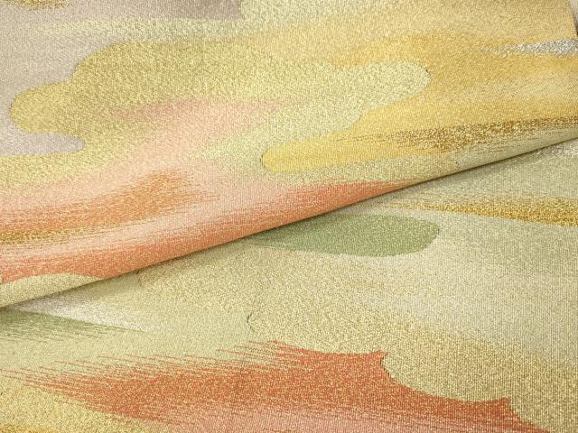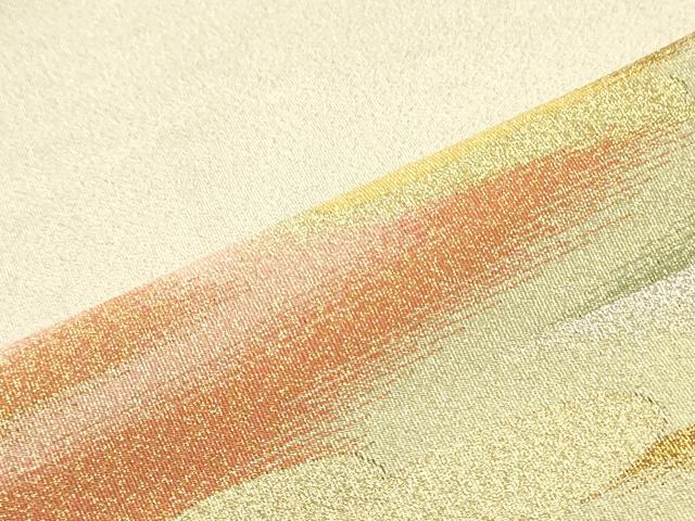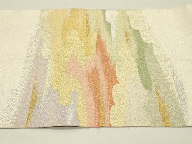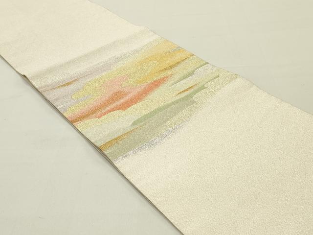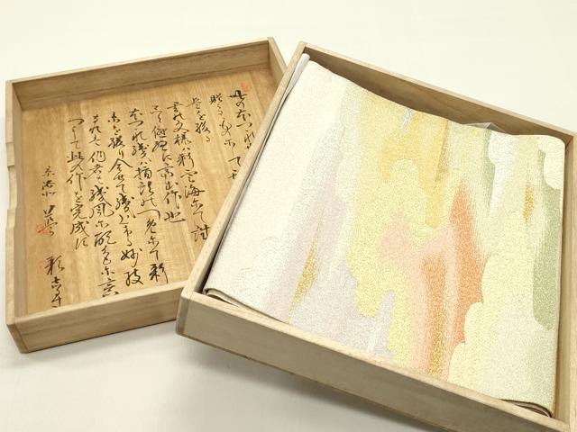 Heiwa-ya Kimono: 8-inch Nagoya Obi with a scratched pattern, featuring a Kasumi design and gold and silver threads. Comes with a box. Pure silk. Excellent condition. DAAY0449ob