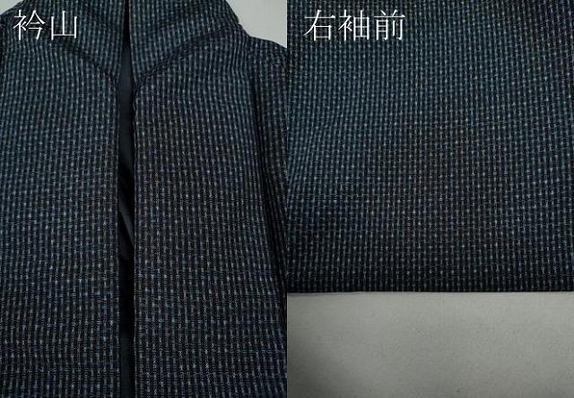 着物の状態は接写画像のように衿山・右袖前に薄い汚れがございますが