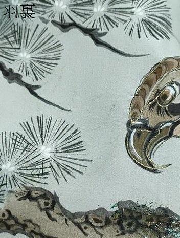 羽織の状態は接写画像のように羽裏に柄写りや金彩の変色がございますが