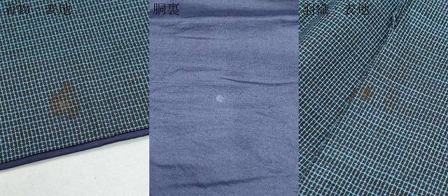 羽織の状態は接写画像のように表地所々・右袖に薄い汚れにがございます。