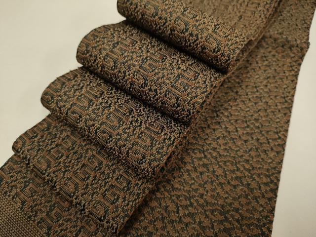 Heiwaya Kimono ● Men's Authentic Chikuzen Hakata Weave Double-Sided Obi Belt with Mist Pattern, Pure Silk, Excellent Quality DABD2215du