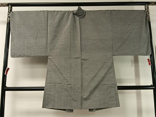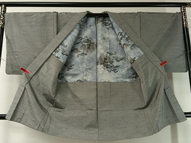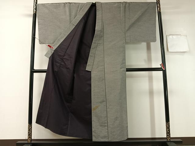 Heiwa-ya Kimono: Men's Tsumugi Ensemble, Kikyo Gray, Pure Silk, Excellent Condition, CABA4655vp