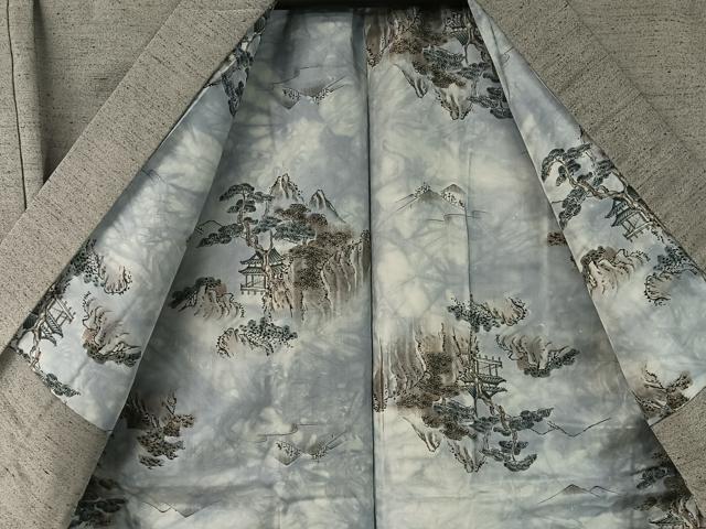 羽織の状態は接写画像のように右袖前に薄いシミがございます。