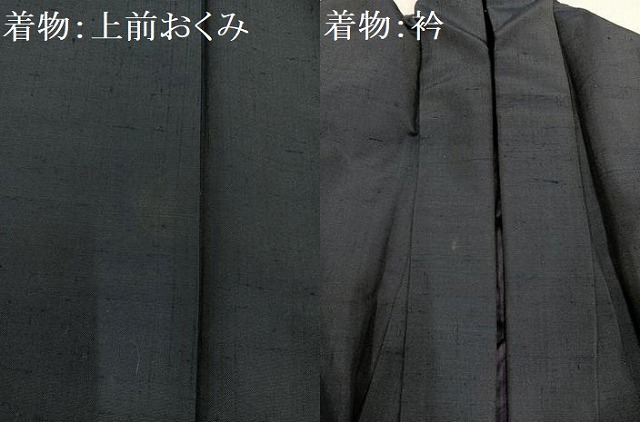 着物の状態は接写画像のように上前おくみ・衿に薄い汚れがございますが