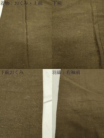 着物の状態は接写画像のようにおくみ・上前・下前・下前おくみに薄い汚れがございますが