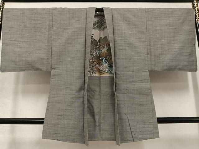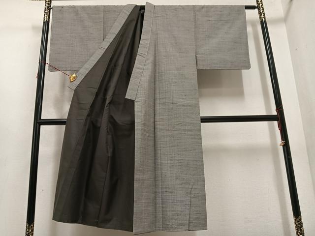 Heiwaya Kimono: Men's Yuki Tsumugi Ensemble, Handwoven, Solid Color, Rikyu White Brown, Warranty Included, Pure Silk, Excellent Condition, AABC8068ph