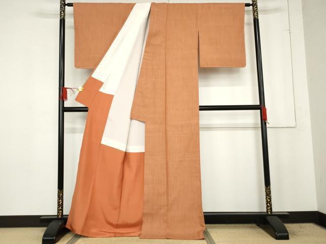 Heiwa-ya Kimono: Yuki Tsumugi, plain color, cinnamon-colored, pure silk, excellent condition, unused, AABE5295cs