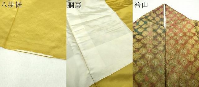 状態は接写画像のように八掛裾に裂け、胴裏、衿山に薄い汚れがございますが