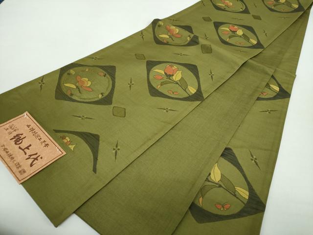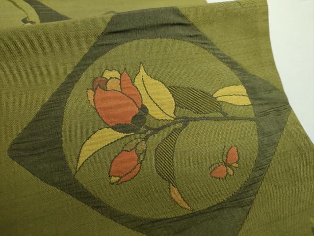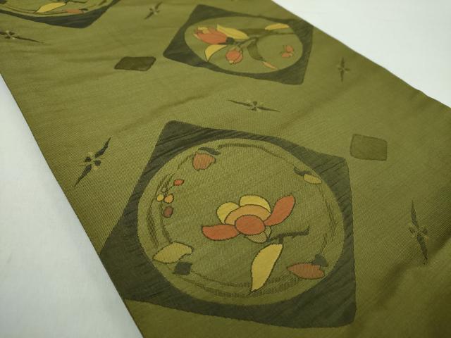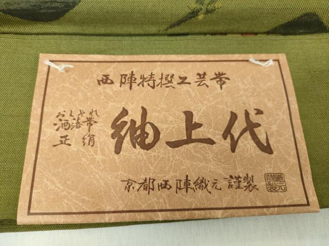 Heiwaya Kimono: Nishijin six-pass pattern obi, Tsumugi (old style), Hanabishi pattern, certificate included, pure silk, excellent condition, unused, DABA1315ps