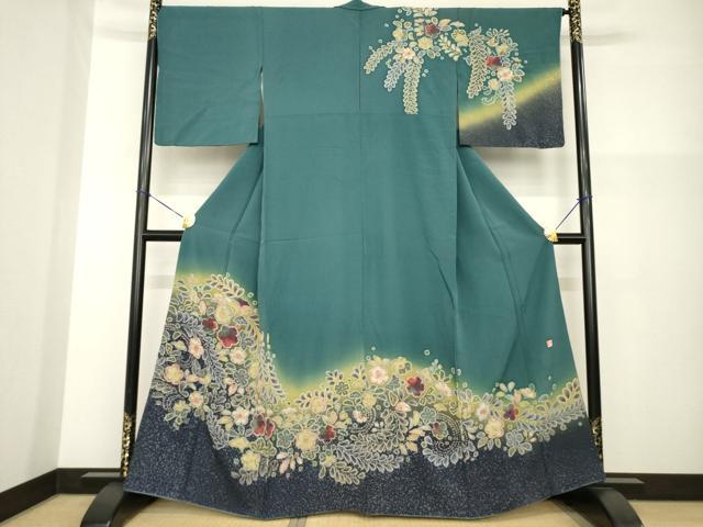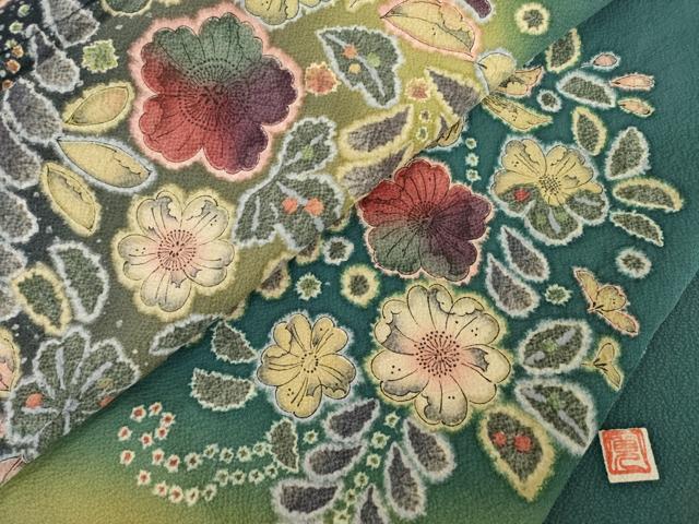 Heiwaya Kimono ● Formal Kimono, Artist-made, Tsujigahana style, Dancing Flower Pattern, Gradation Dye, Pure Silk, Exquisite Item, AABG4020ck