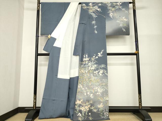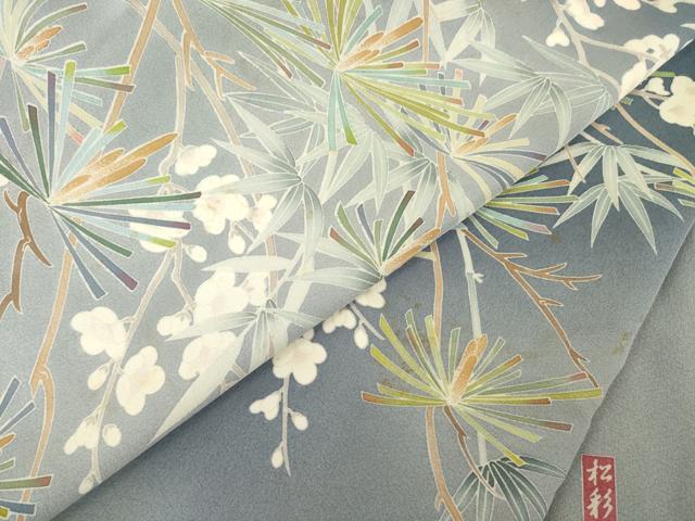 状態は接写画像のように白場にアク、表地にシミ、胴裏・衿裏に点穴がございます。