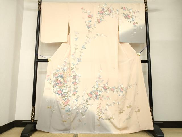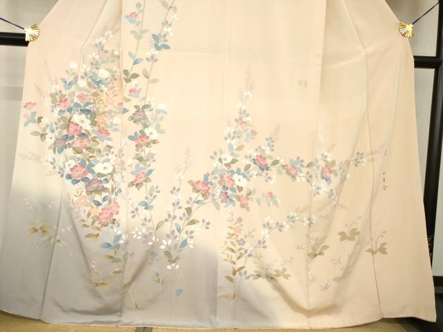 Heiwaya Kimono ● Visiting Kimono, Yuzen Dyeing, Artist-Made, Branch and Flower Pattern, Pure Silk, Exquisite Item, AABG4073ck