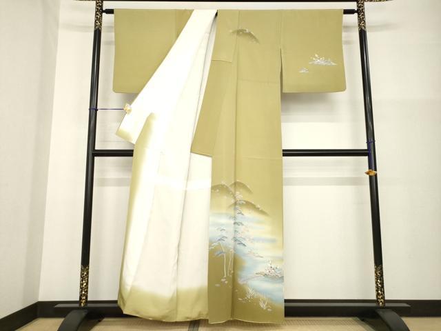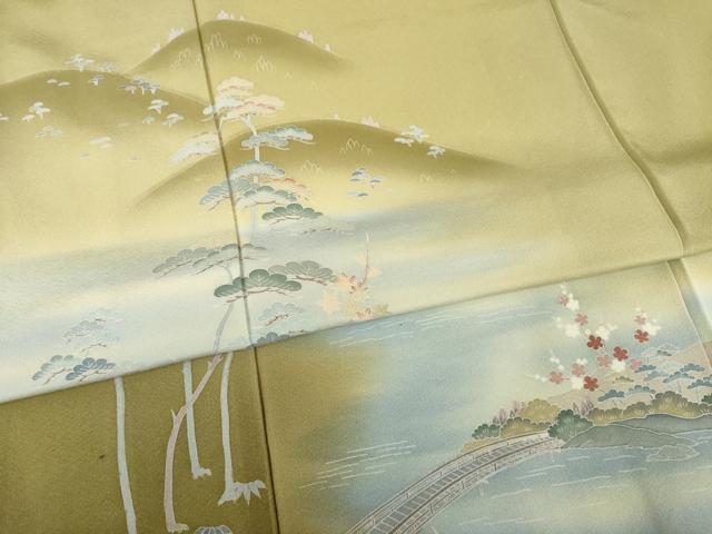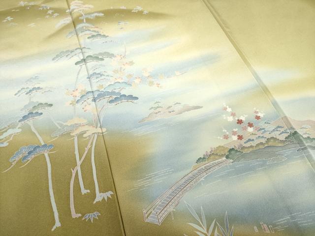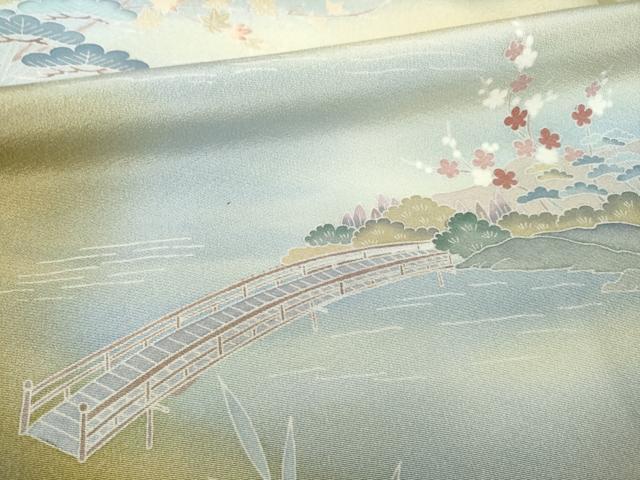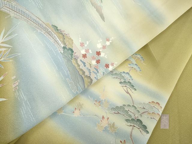 Heiwaya Kimono ● Visiting Kimono, Yuzen Dyeing, Artist-Made, Bridge Landscape Pattern, Gradation Dyeing, Pure Silk, Exquisite Item, AABG3665ck