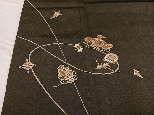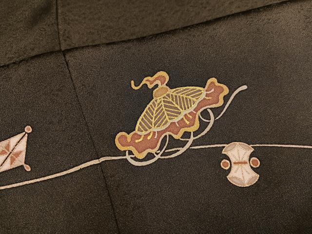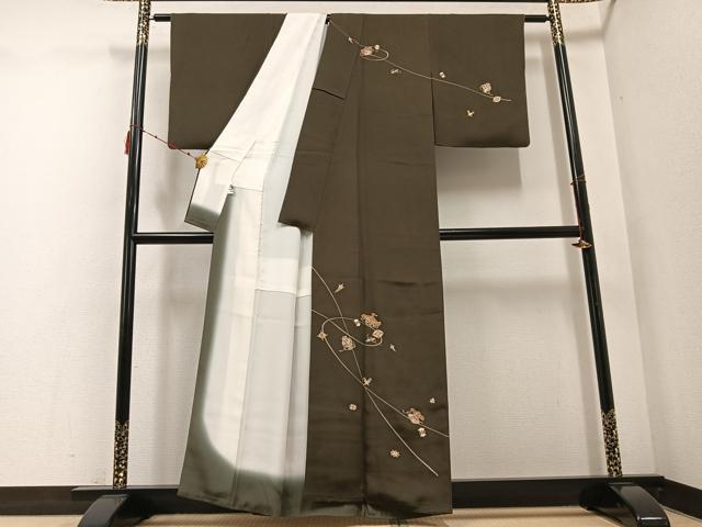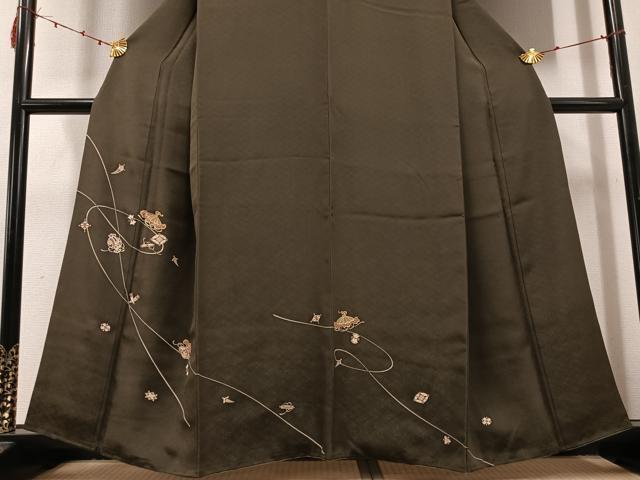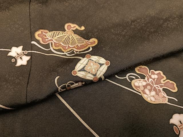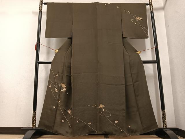 Heiwa-ya Kimono: Visiting Kimono, Yuzen, Treasure-filled, Sea Pine Brown, Gold-Tone, Pure Silk, Excellent Item, AABE2542ph
