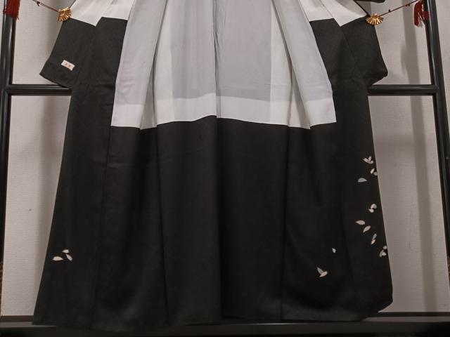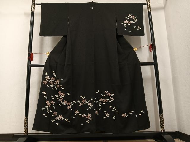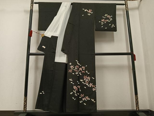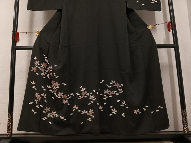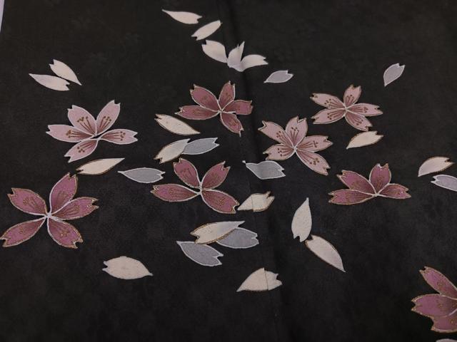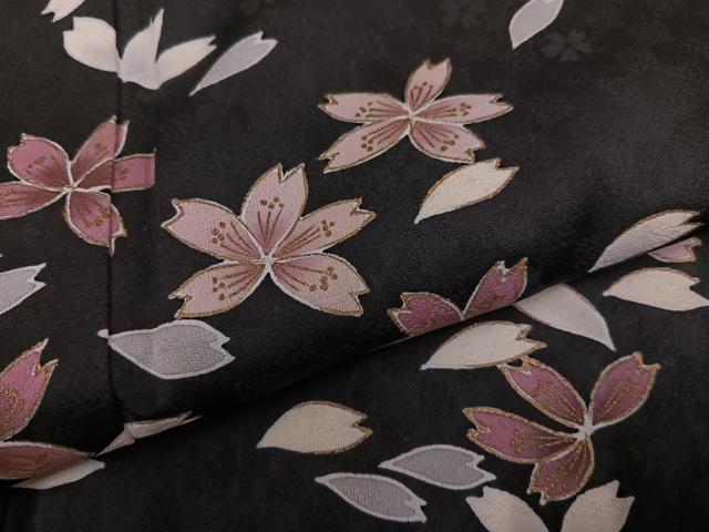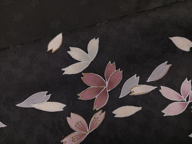 Heiwaya Kimono ● Visiting Kimono, Night Cherry Blossoms, Black Background, Gold Embellishments, Pure Silk, Exquisite Item, AABG4095ph