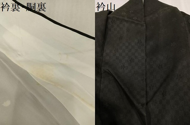 状態は接写画像のように衿裏・胴裏・衿山に薄い汚れがございますが