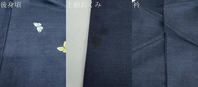 状態は接写画像のように後身頃・上前おくみ・衿に薄い汚れがございますが