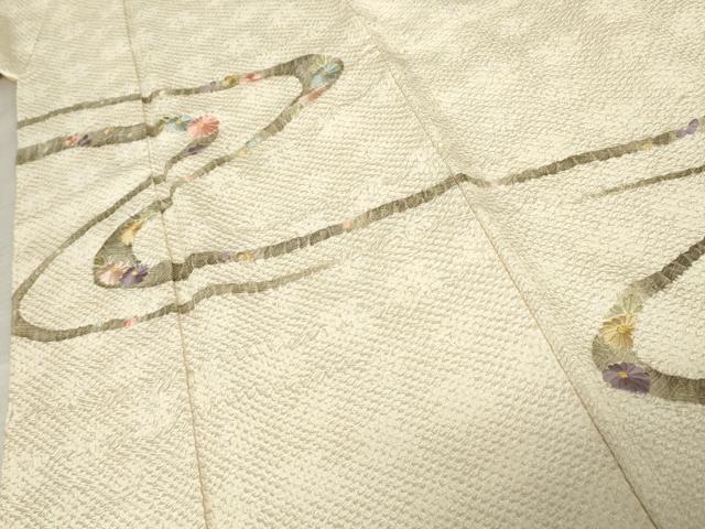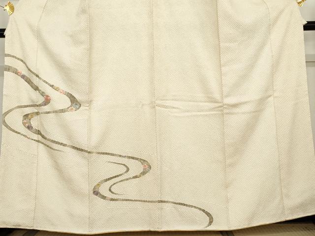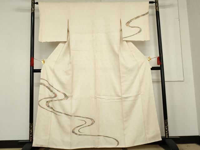 Heiwaya Kimono: Visiting Kimono, Shibori, Embroidered, Flowing Water and Flower Pattern, Gold Thread, Pure Silk, Excellent Condition, Unused, AABE5301cs