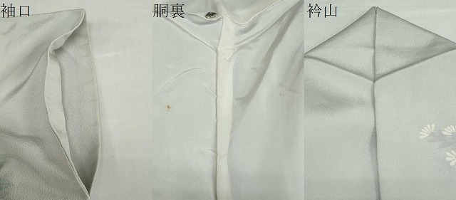 状態は接写画像のように袖口・胴裏・衿山に薄い汚れがございますが