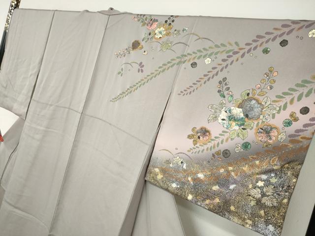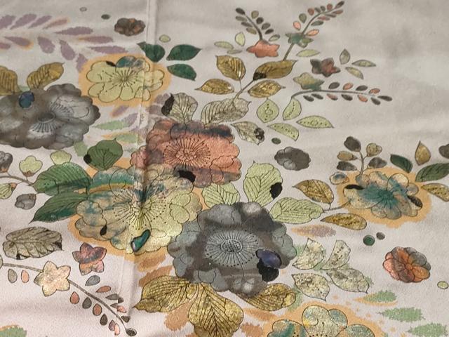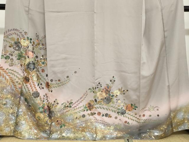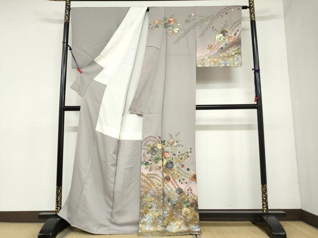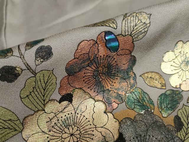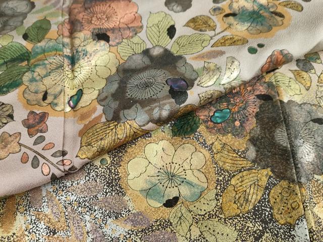 Heiwa-ya Kimono: Visiting Kimono with Mother-of-Pearl Inlay and Tsujigahana Design, Gold and Silver, Pure Silk, Excellent Item, DAAZ7106ud