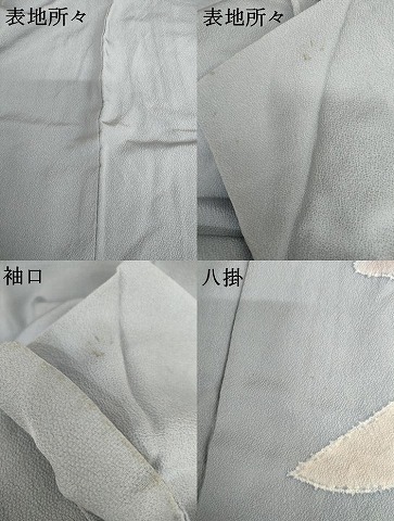 状態は接写画像のように表地所々にヤケ、表地所々・八掛に薄い汚れ、袖口に汚れがございます。