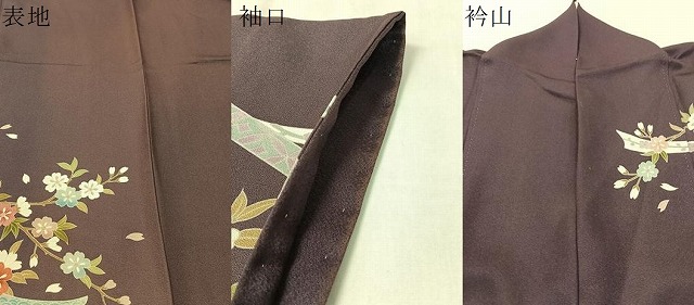 状態は接写画像のように表地所々に焼け、袖口・衿山に薄い汚れがございます。