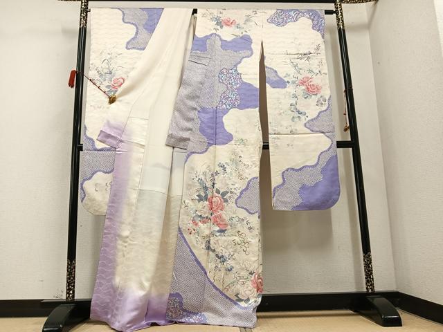 Heiwaya Kimono: Gorgeous furisode kimono with shibori (dyed) and floral motifs, silver glaze, pure silk, exquisite item, AABC9762ph