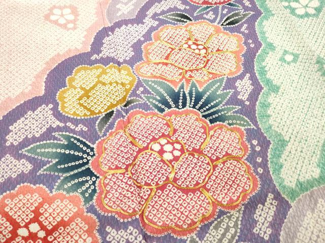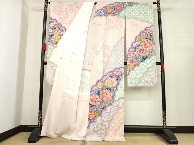 Heiwa-ya Kimono: Gorgeous Furisode Kimono with Layered Snow and Flower Pattern, Pure Silk, Excellent Item, AABE0276ck