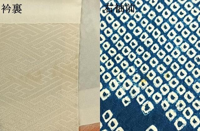 状態は接写画像のように衿裏・右袖前に薄い汚れがございますが
