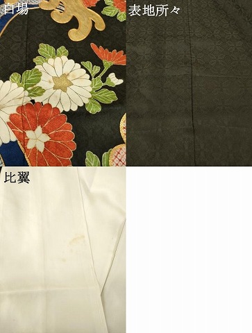 状態は接写画像のように白場にアク、表地にヤケ、比翼にシミがございます。